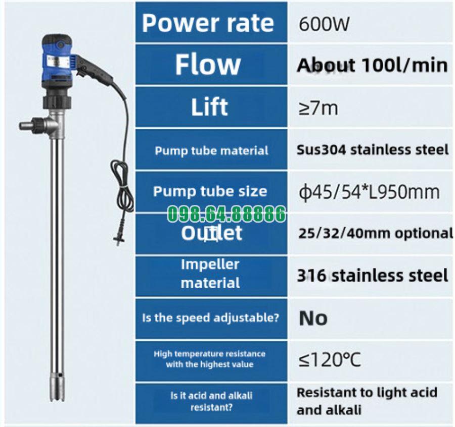 Bơm hút thùng phuy JDT-G120-600W được chế tạo từ các vật liệu cao cấp như:
