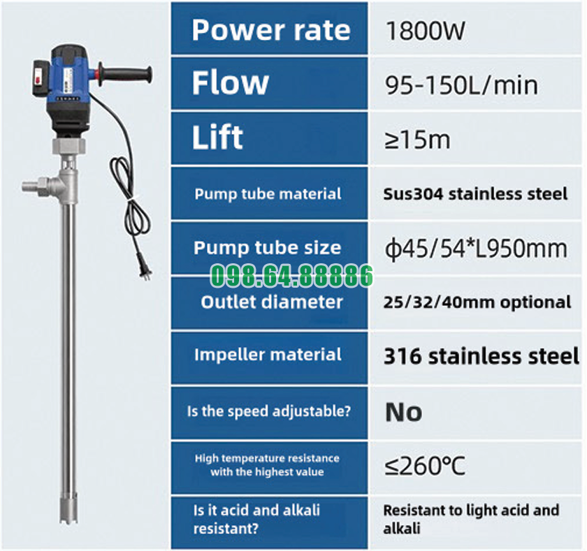 Nhờ đó, Bơm thùng phuy lỏng nhiệt độ cao JDT-1800W-G260 không chỉ mang diện mạo hiện đại mà còn đáp ứng tốt các yêu cầu khắt khe về hiệu suất và độ bền trong công nghiệp.
