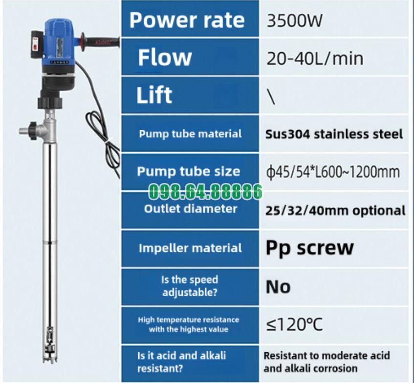 Máy bơm chất lỏng với cánh bơm Pp JDT-3500W-LGG120