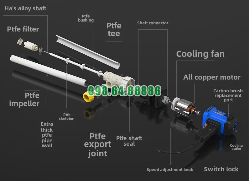 Máy bơm hóa chất trục PTFE JDT-1800W-PTFE