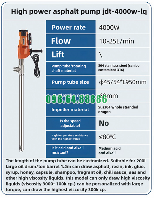 Bơm chiết rót nhựa đường từ phuy JDT-4000W-LQ