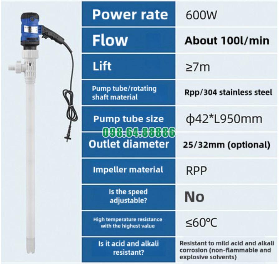 Máy bơm chuyển dầu, nước, dung môi nhẹ JDT-600W-RPP