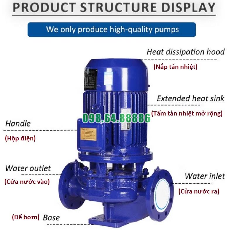 Máy bơm tăng áp inline, bơm ly tâm trục đứng ISG80-350, IRG80-350 55kw, 50m3, 150m
